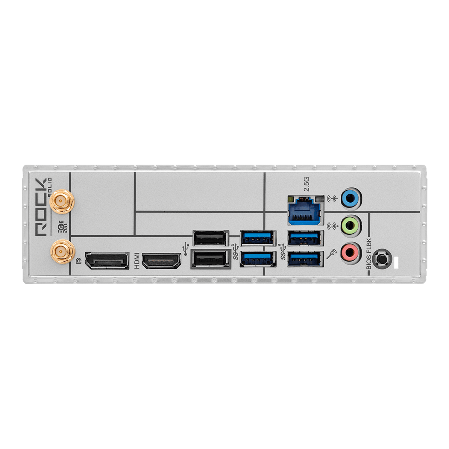 - 2 x Antenna Ports - 1 x HDMI Port - 1 x DisplayPort 1.4 - 4 x USB 3.2 Gen1 Ports - 2 x USB 2.0 Ports - 1 x RJ-45 LAN Port - 1 x BIOS Flashback Button - HD Audio Jacks: Line in / Front Speaker / Microphone |