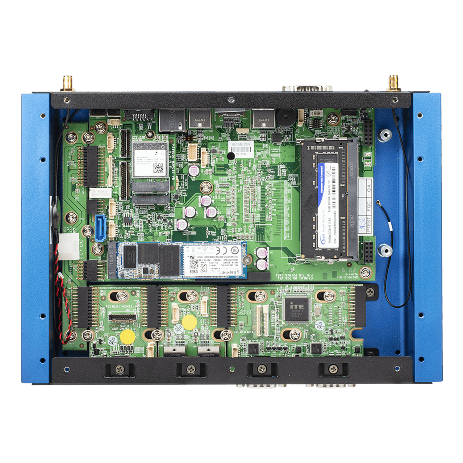 (2) RS232/RS422/RS485** (DB-9) (1) RS232 (DB-9) (1) HDMI 1.4 / HDMI 2.0B (Back Panel) (4) USB 3.2 Gen 2 (Type A) (2) 2.5 Gbps LAN (RJ45, i211/i219LM) (1) Audio line-out (1) MIC-in (4) USB 2.0 |
