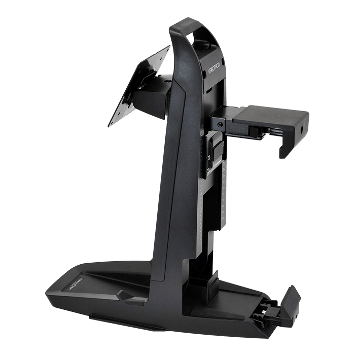 Add ergonomic adjustability and portability while saving space with this unique all-in-one stand. Includes a Secure Clamp (SC), adjustable CPU holder. The perfect accessory for space-constrained areas, it enables you to mount both a CPU and display while providing effortless height adjustment of the monitor.