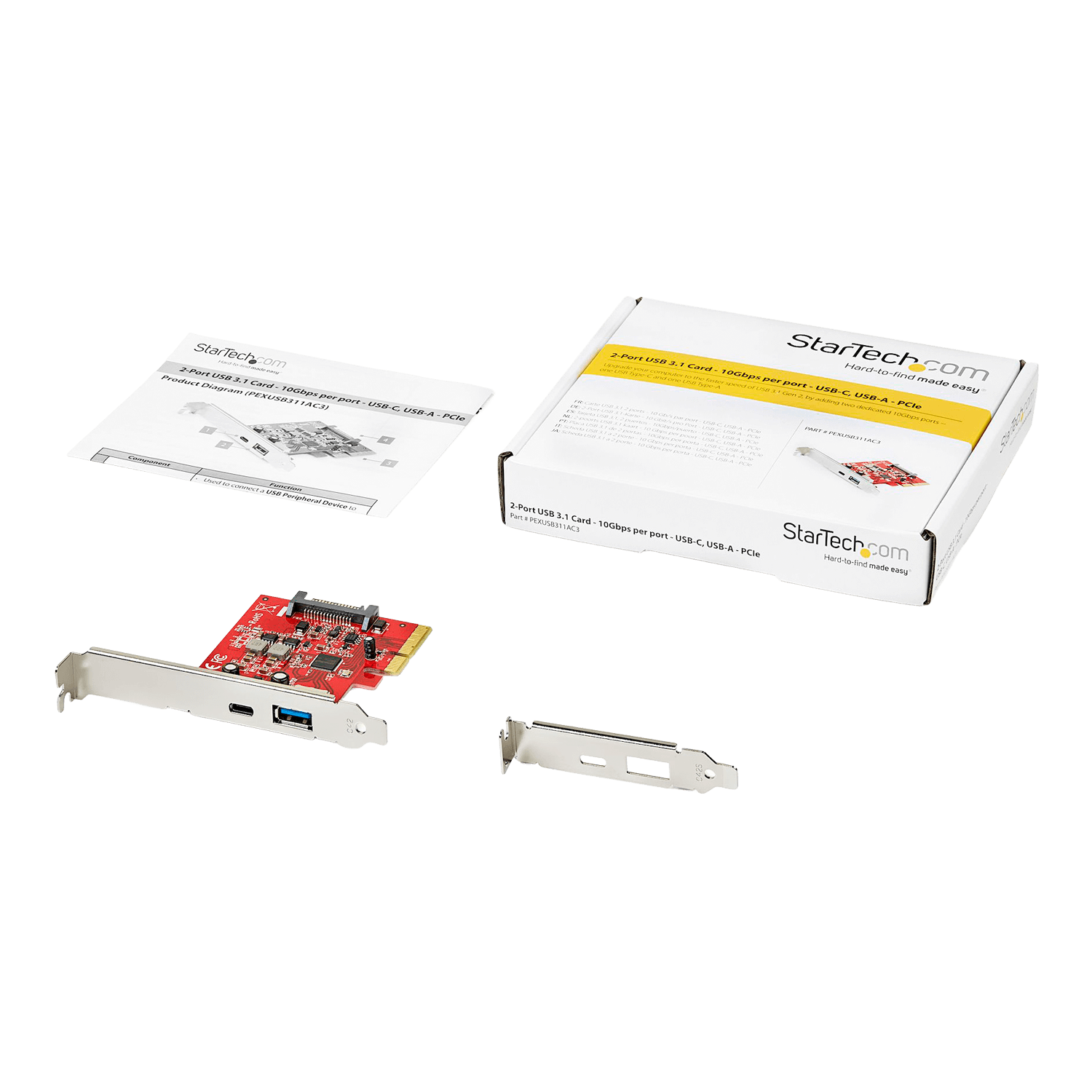1 - USB 3.1 Card 1 - Full Profile Bracket (Installed) 1 - Low Profile Bracket 1 - Quick-Start Guide |