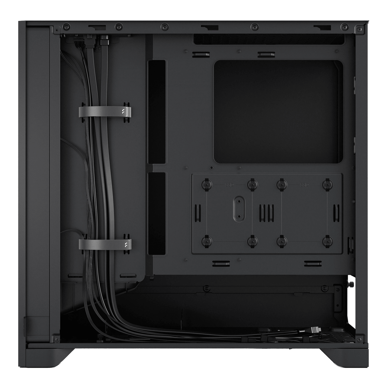Cable routing space 23 mm (behind motherboard), 35 mm (cable channel)